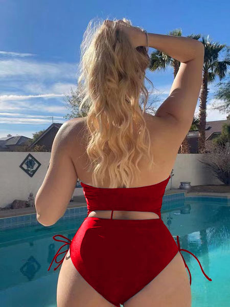Your next vacation begins with the Heartstings Cutout Lace Up One-Piece Swimsuit! Sleek stretch knit shapes this sexy one-piece swimsuit with a cutout bodice and drawstring ties that crisscross atop the open back and thick back band. Medium full coverage bottoms with a flattering waist fit.