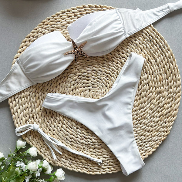 white strapless bikini starfish bandeau top swimsuit womens swimwear