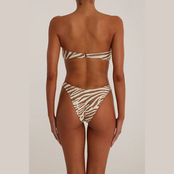 brown and white animal print strapless bandeau bikini womens swimwear swimsuits