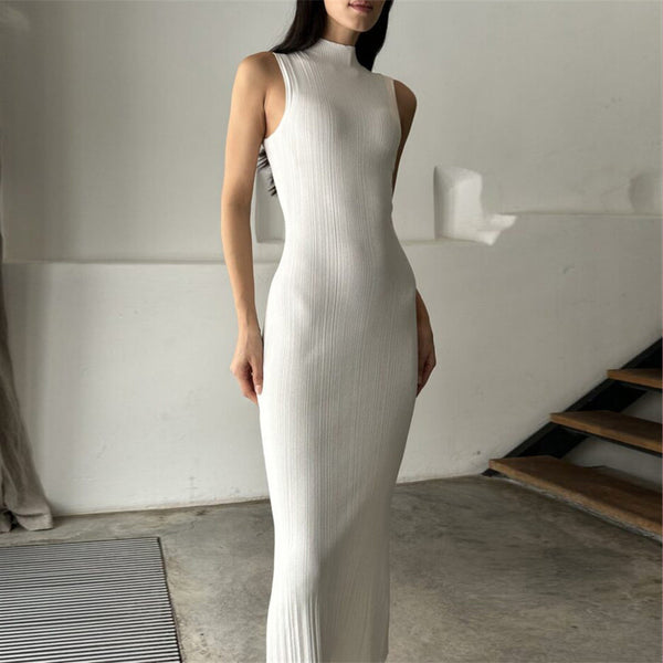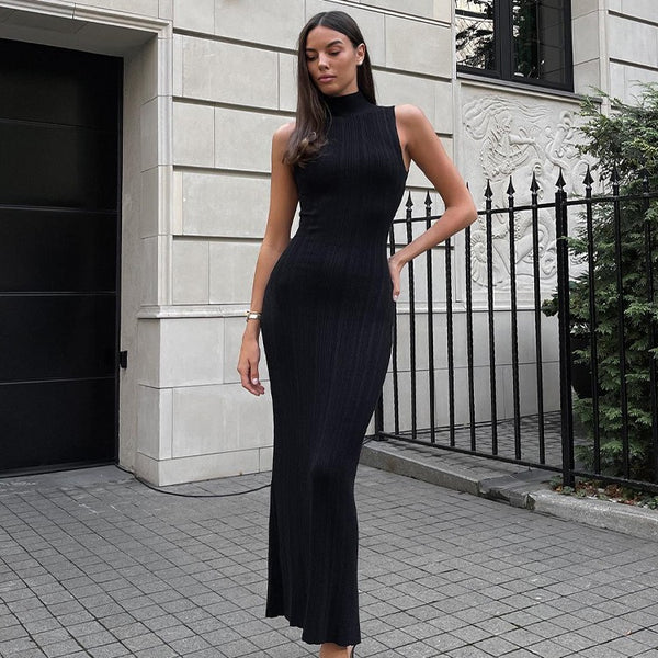 Accentuate your sexy figure with this slim, sleeveless bodycon dress that features a playful turtleneck and mid-length design. Perfect for everyday wear, this maxi dress is made from comfortable jersey fabric and boasts a solid pattern for a chic and elegant look. Fit for any occasion, this dress is a must-have for your spring and summer wardrobe.