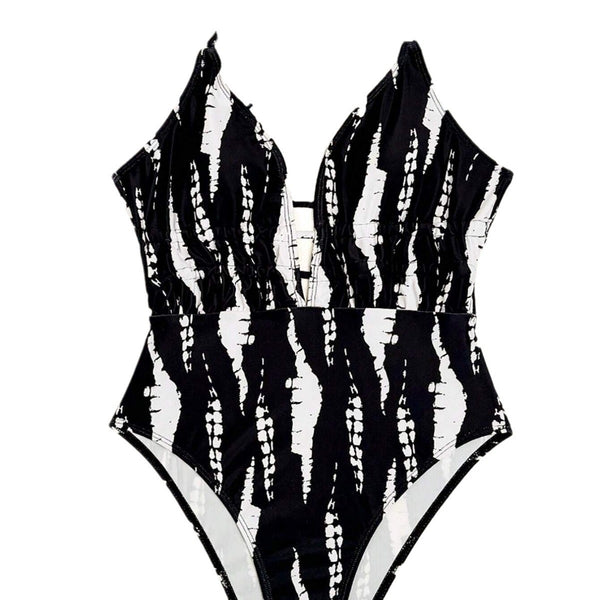 Get ready to stand out in our Jackie Black and White Tye One Piece Swimsuit - it's the perfect blend of boho and chic! Made with a playful nylon mix, this swimsuit features a unique tye-die pattern, complete with a playful tie element and a strappy, backless style. Who says you can't look stylish at the beach?!
